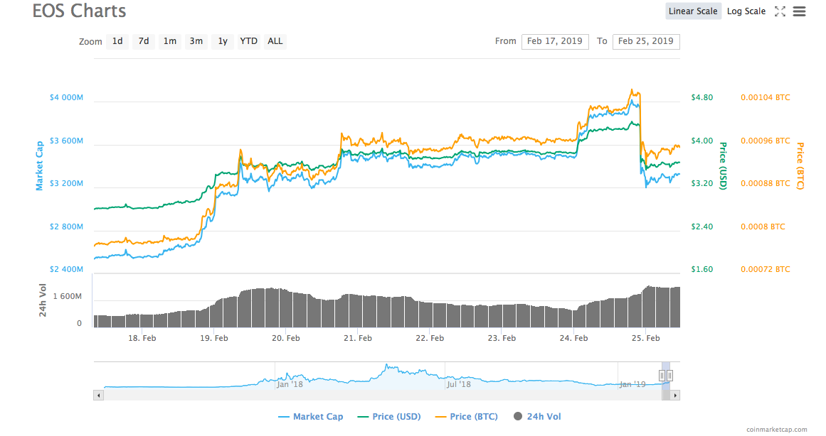 EOS周报(2月18日-2月24日)| 互联网论坛宣布用EOS奖励3亿用户;EOS周内涨幅达超25%